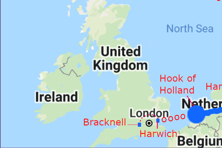 Not the most exciting day’s driving….130 miles around London on the M25, through the Dartford Tunnel to Harwich!!!