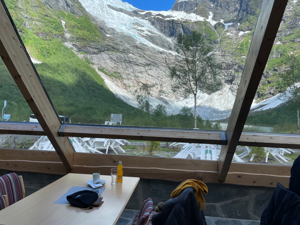 The second set of three pics show my first encounter with a Norwegian glacier: the Boyabreen glacier in the Josteldalsbreen National Park. Some enterprising Norwegian has set up a well run restaurant just below the snout of the glacier and they fixed me up with a very welcome deer burger……