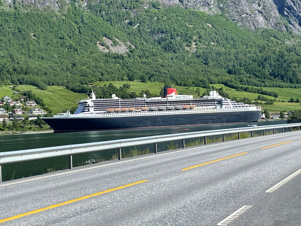 For some reason i was then surprised to find Cunard’s Queen Mary 2 sitting in a Fjord at Olden!!! As you know she was built as a transatlantic steamer but there’s not a lot of demand for that these days, so there she was on a cruise in Northern Europe…. Still does some Southampton to New York crossings if you are nostalgic for that!!!