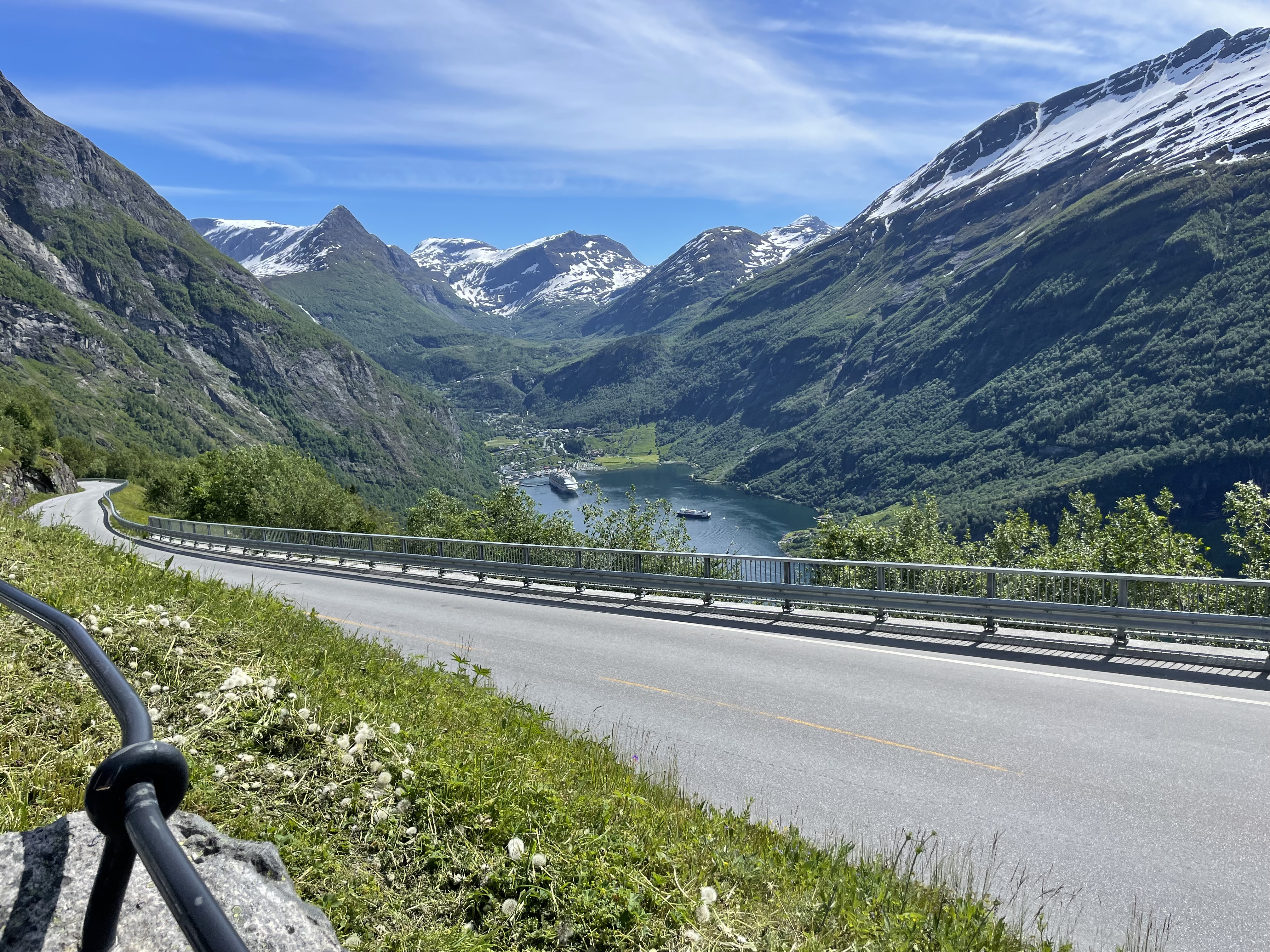 Now looking forward to getting back on the road tomorrow, with the drive to Molde via the Trollstigen Mountain Route and the Eagle Road, two seriously challenging drives. We also have one more ‘unplanned’ ferry ride: from Eidsdal to Linge across the Stordfjorden, the 5th longest fjord in Norway at almost 70 miles! It is a different strand of the same fjord that ends at Geiranger. The voyage takes just 13 minutes but saves going round the long way via Tafjord… The total driving distance tomorrow is pretty modest at just under 100 miles but more hairpins than i can count!!!