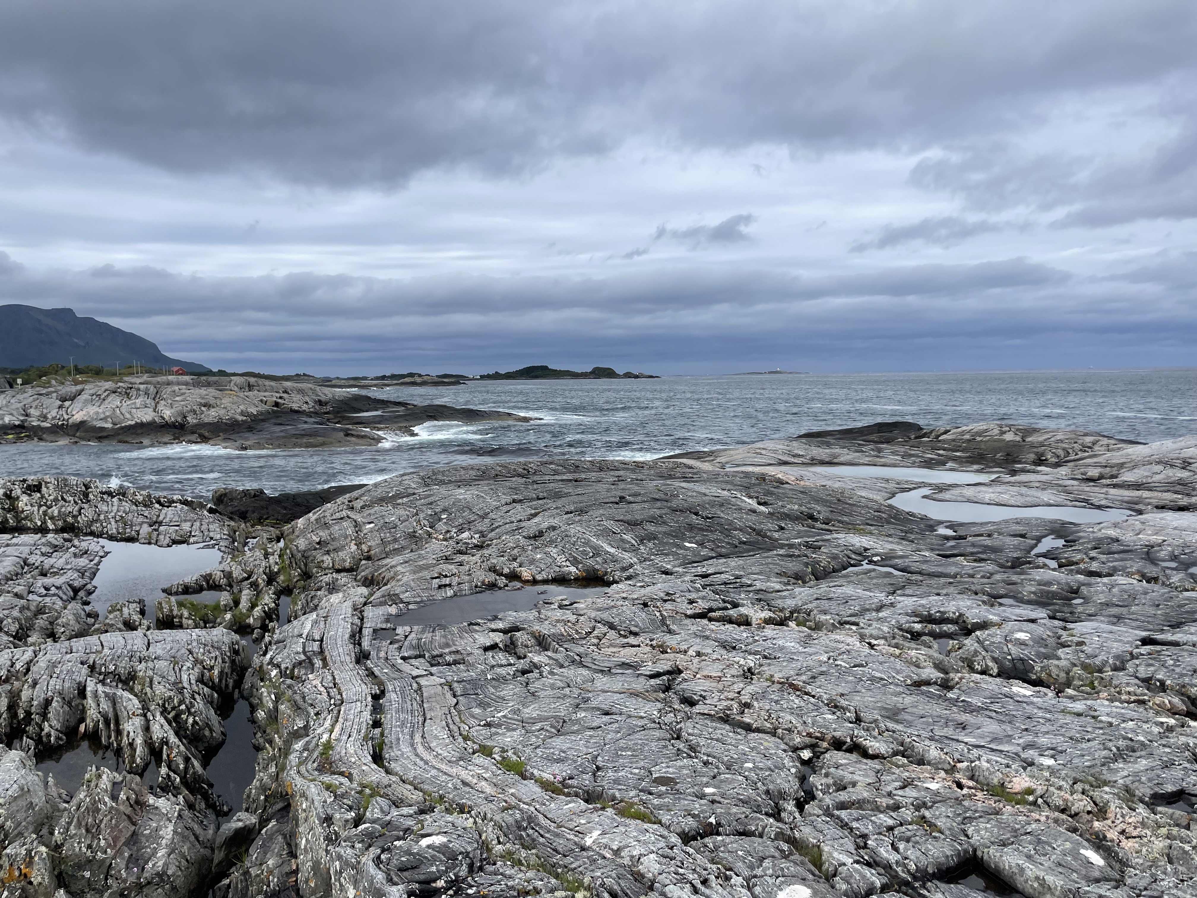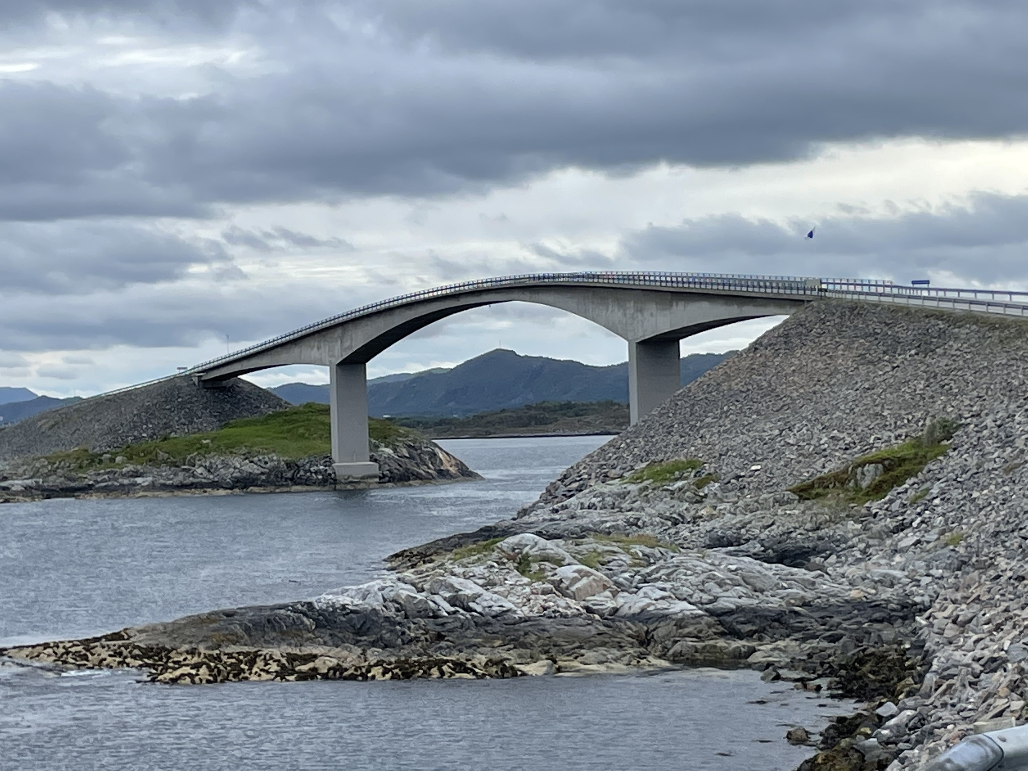 A day of two halves really, first along the Atlantic Road with its magnificent bridges, but a dark and brooding landscape overlooking the equally dark and brooding North Atlantic Ocean. Mood not helped by the weather i guess, also appropriately moody…. Pretty tough kind of place to make a living: the standard model it seems has been for the men to fish and the women to farm and somehow eke out a living doing both. Not so much these days, of course…
