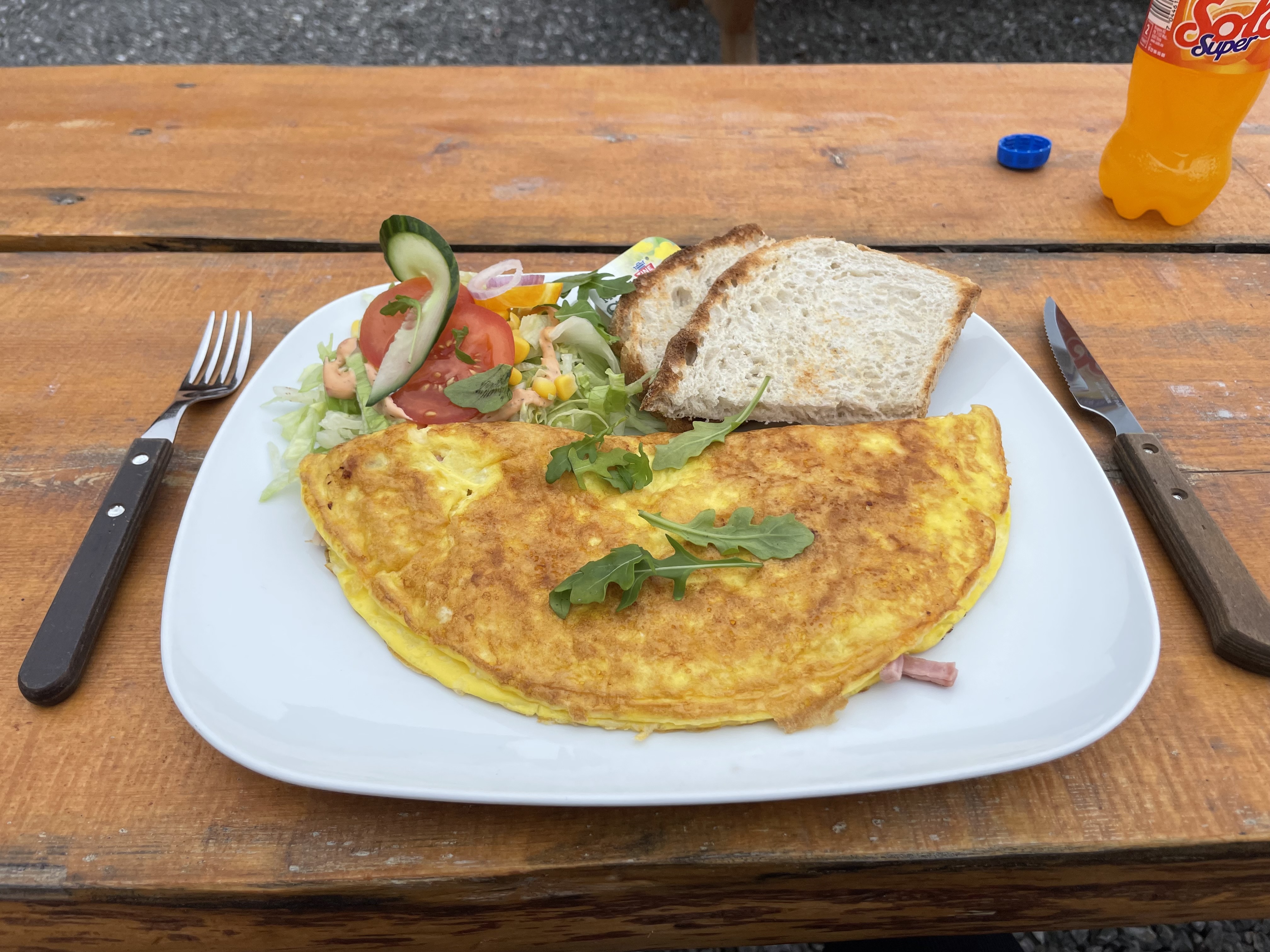 Great stop for lunch at a campsite next to a fjord: enjoyed a huge, wonderfully light and fluffy omlette ….and a giant ice cream cone!!!