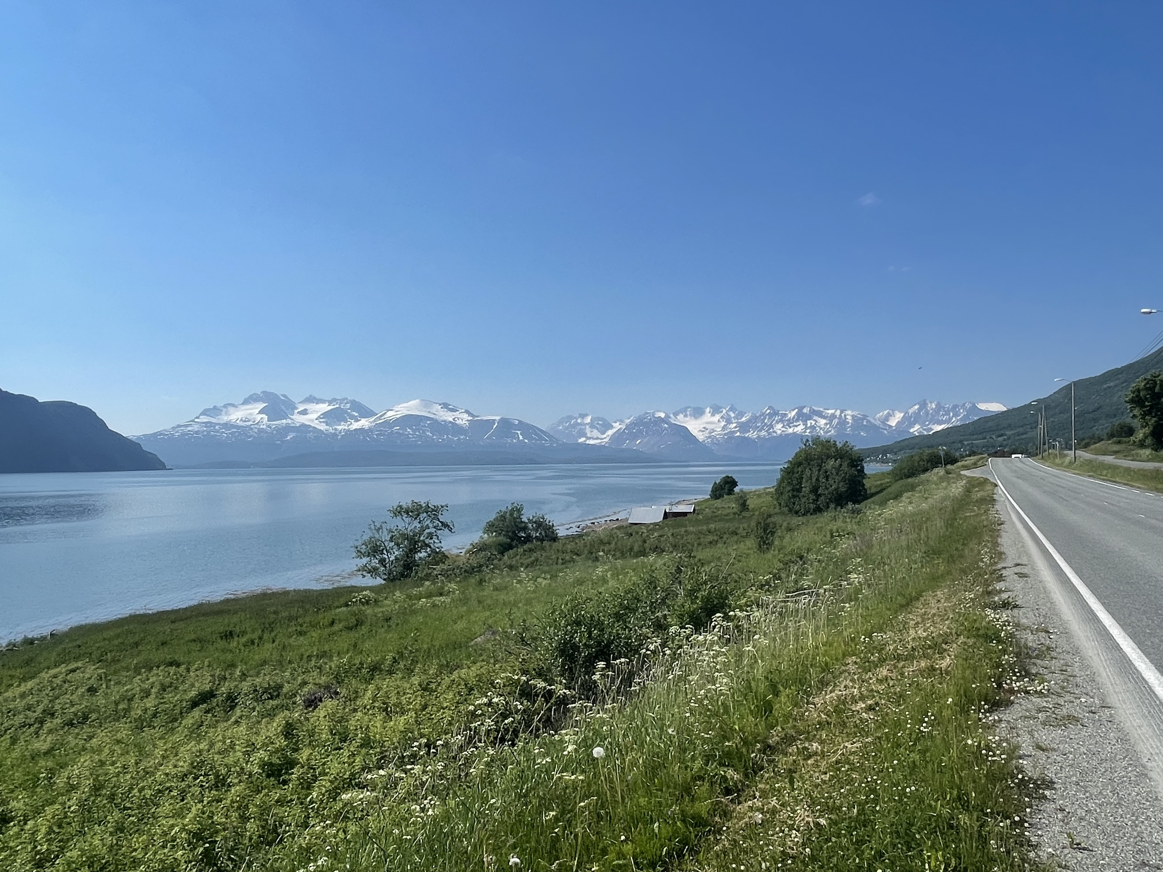 Quite a long but overall relaxing day of driving today. Only one hairpin but innumerable tunnels! No ferries!! I have completely run out of superlatives to describe the scenery here in North Norway so i will chicken out and let the pics do the talking…..