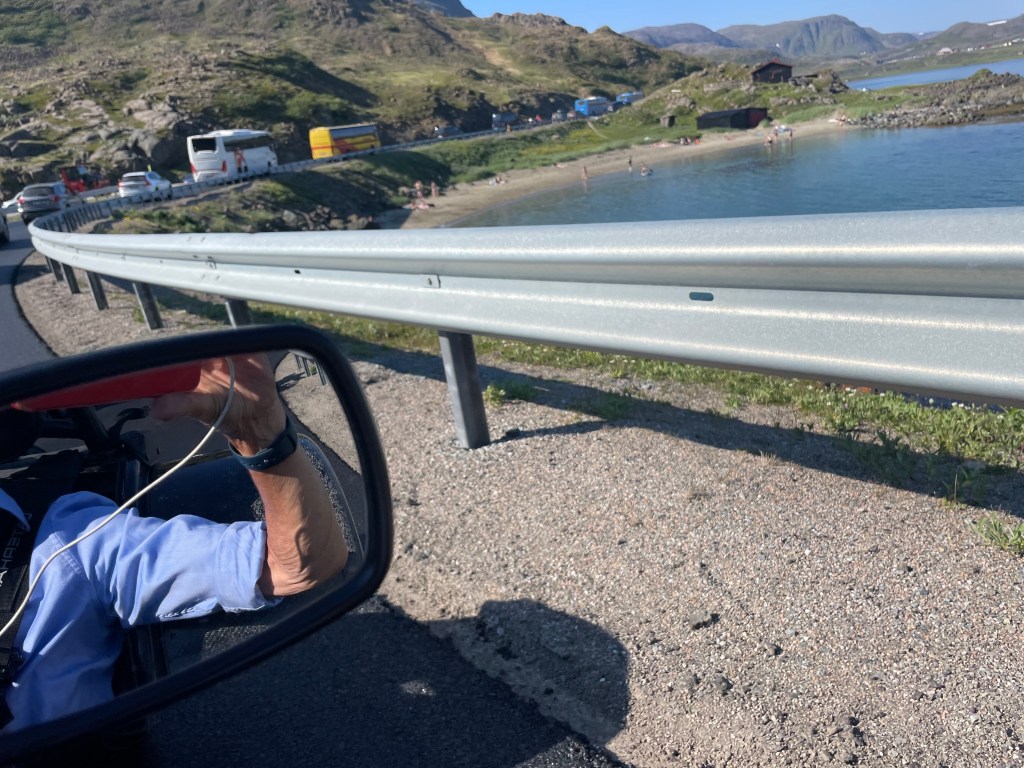 Each winter the roads get torn up by the weather and Norwegians spend the short summer getting them back into shape: so these traffic jams are pretty common this far north.