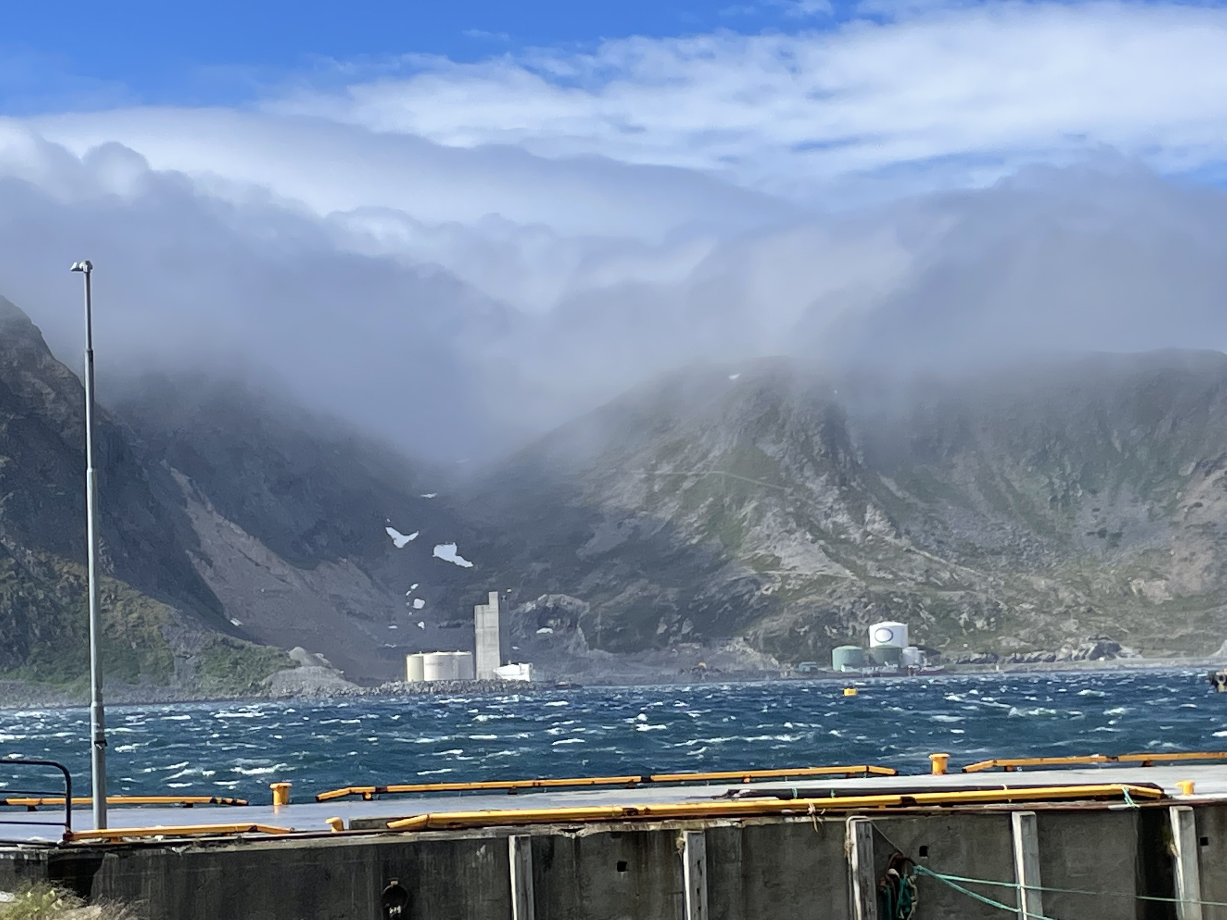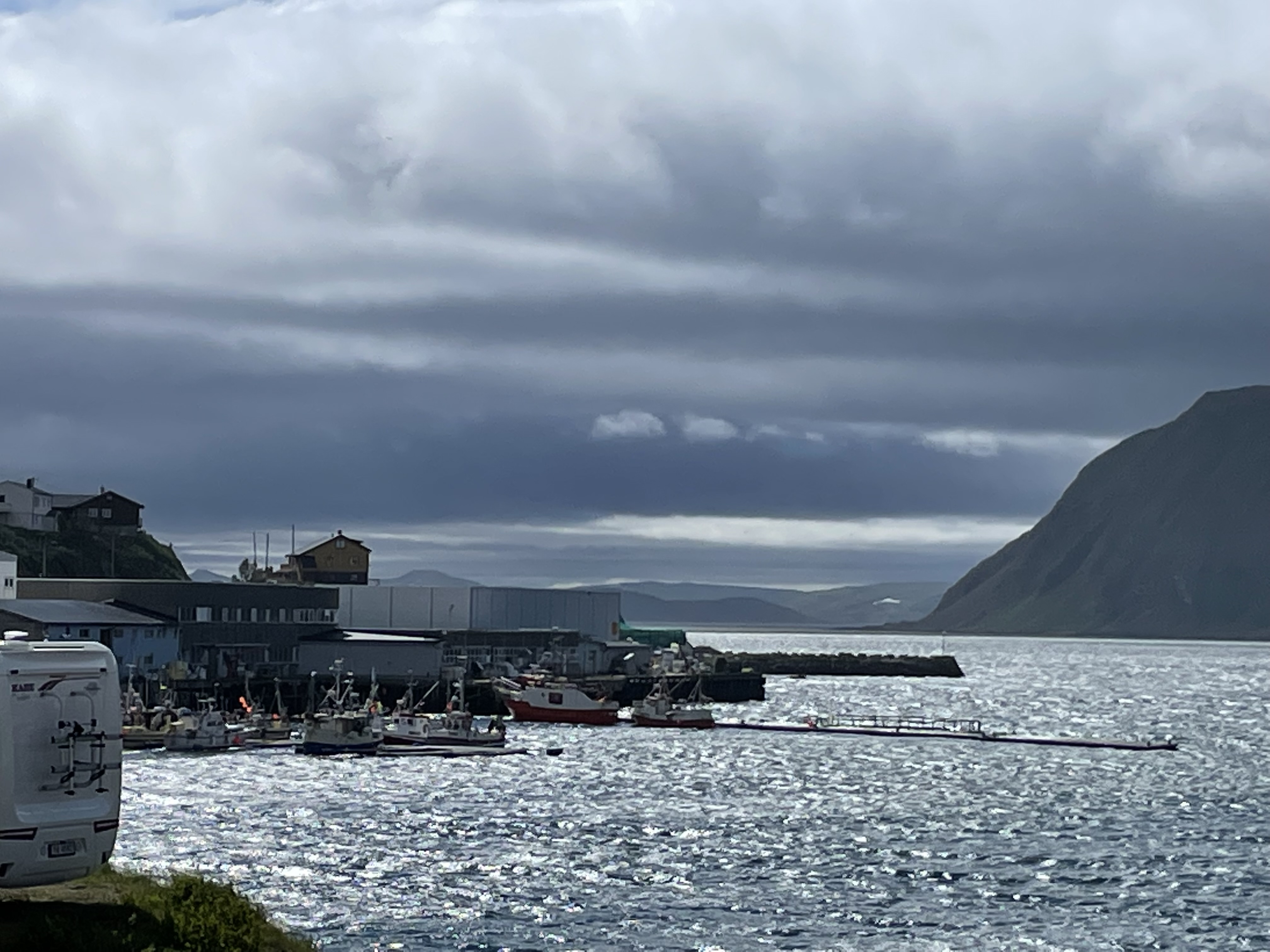 Honningsvag is a small city with population of 2,500, although a few more than that this time of year. Still, having walked around it in 45 minutes there is not a lot more to see and the weather continued to be the most interesting thing about the day: we wound up with ‘sunny intervals’ between periods of low and heavy cloud, but no rain!!! Here’s a vid:
