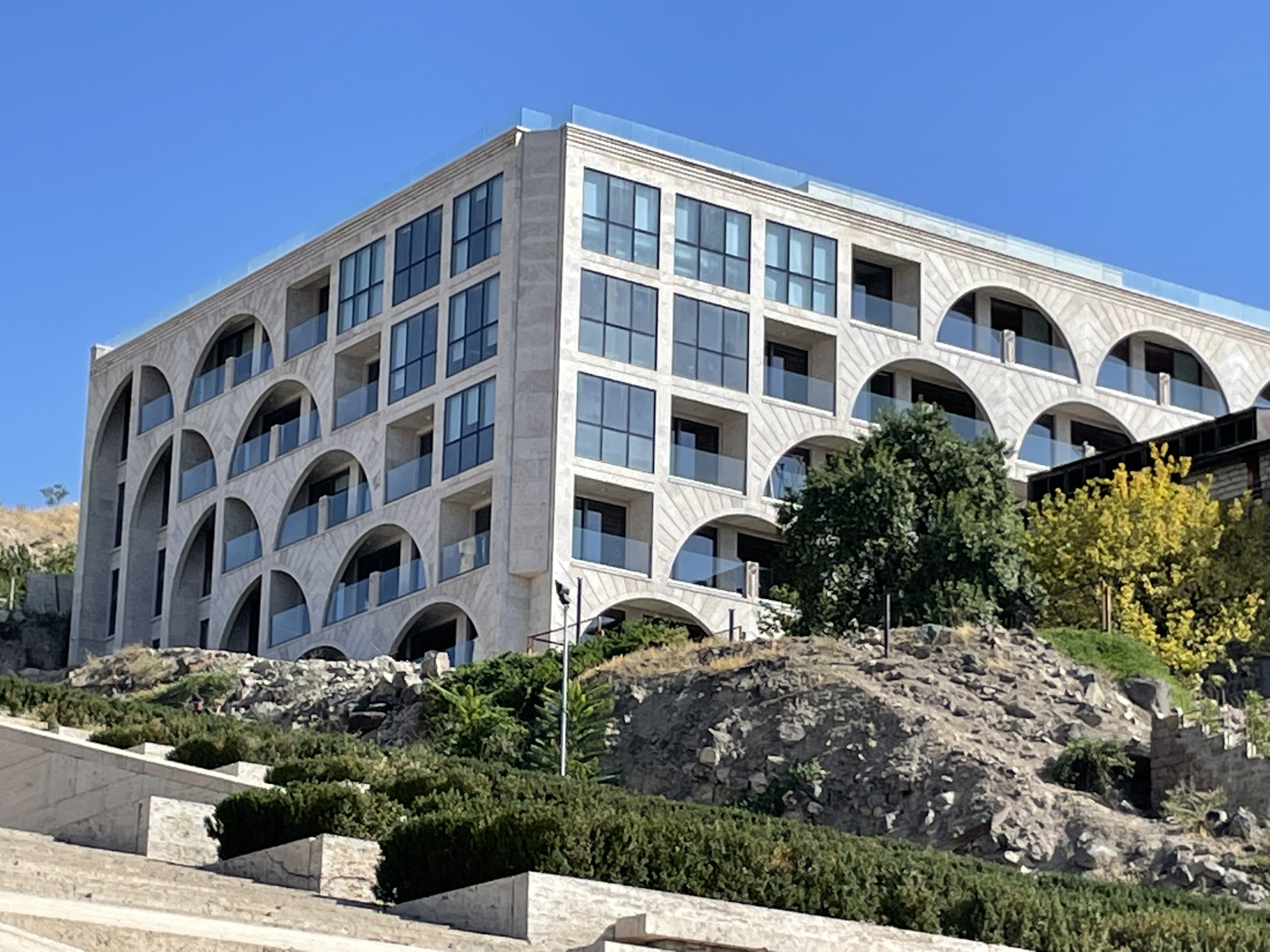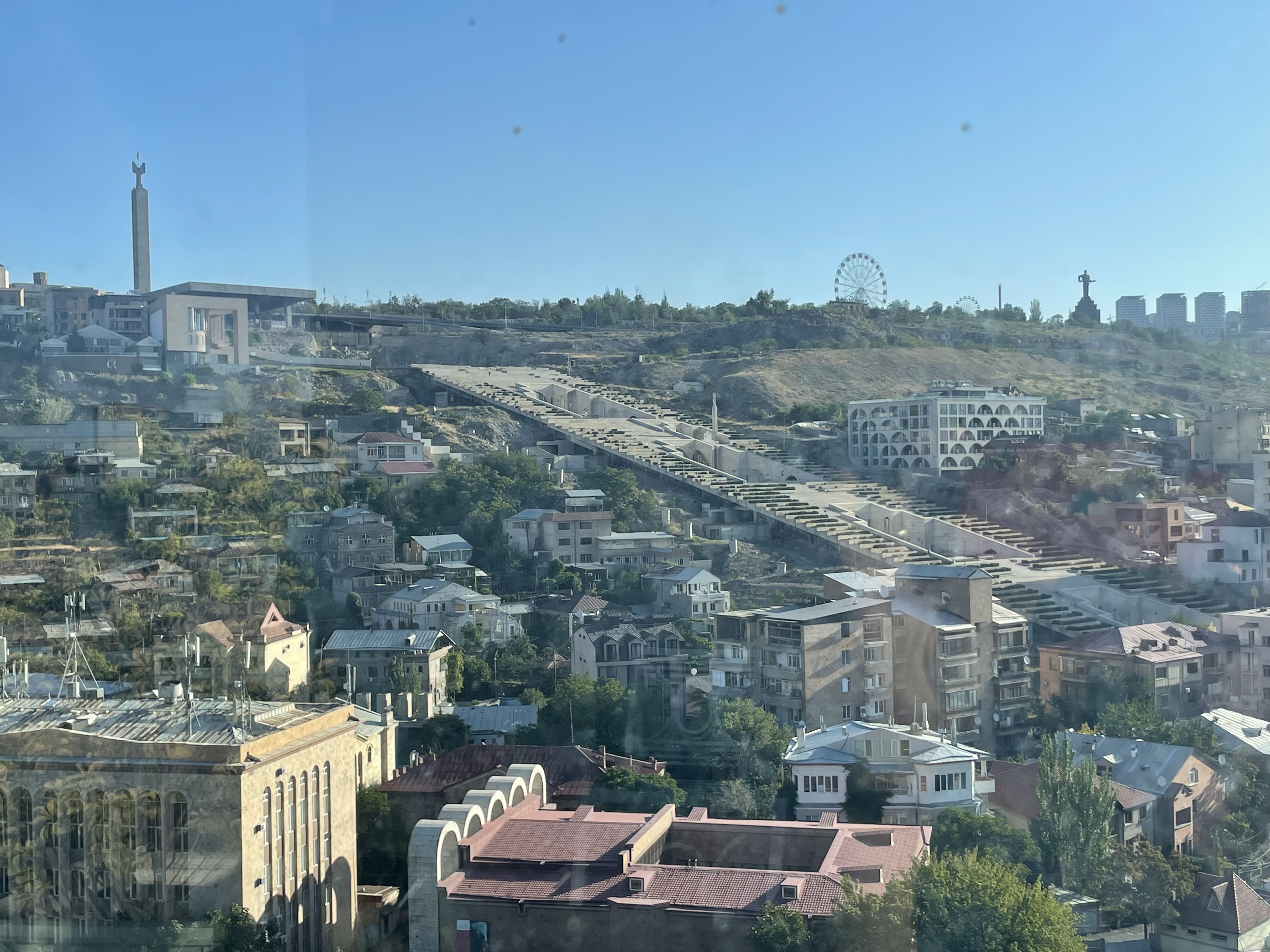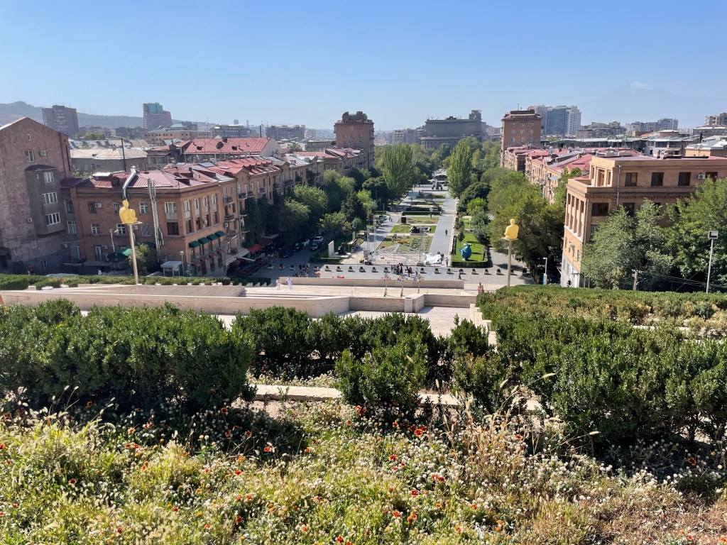 Here are a couple of pics from my hotel bedroom window which although poor quality should give you an idea of the higgledy piggledy array of architectural styles in Armenia’s Capital City: