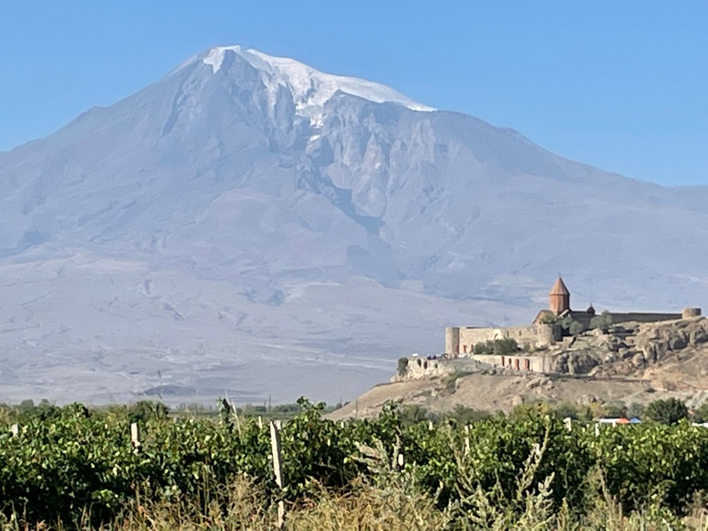 That’s Greater Ararat mountain soaring up to 16,853 feet behind Khor Virap. Armenia has been nibbled away at by its bigger neighbours for centuries: Mount Ararat is a good example having previously been located in Armenia, it is now part of Turkey.