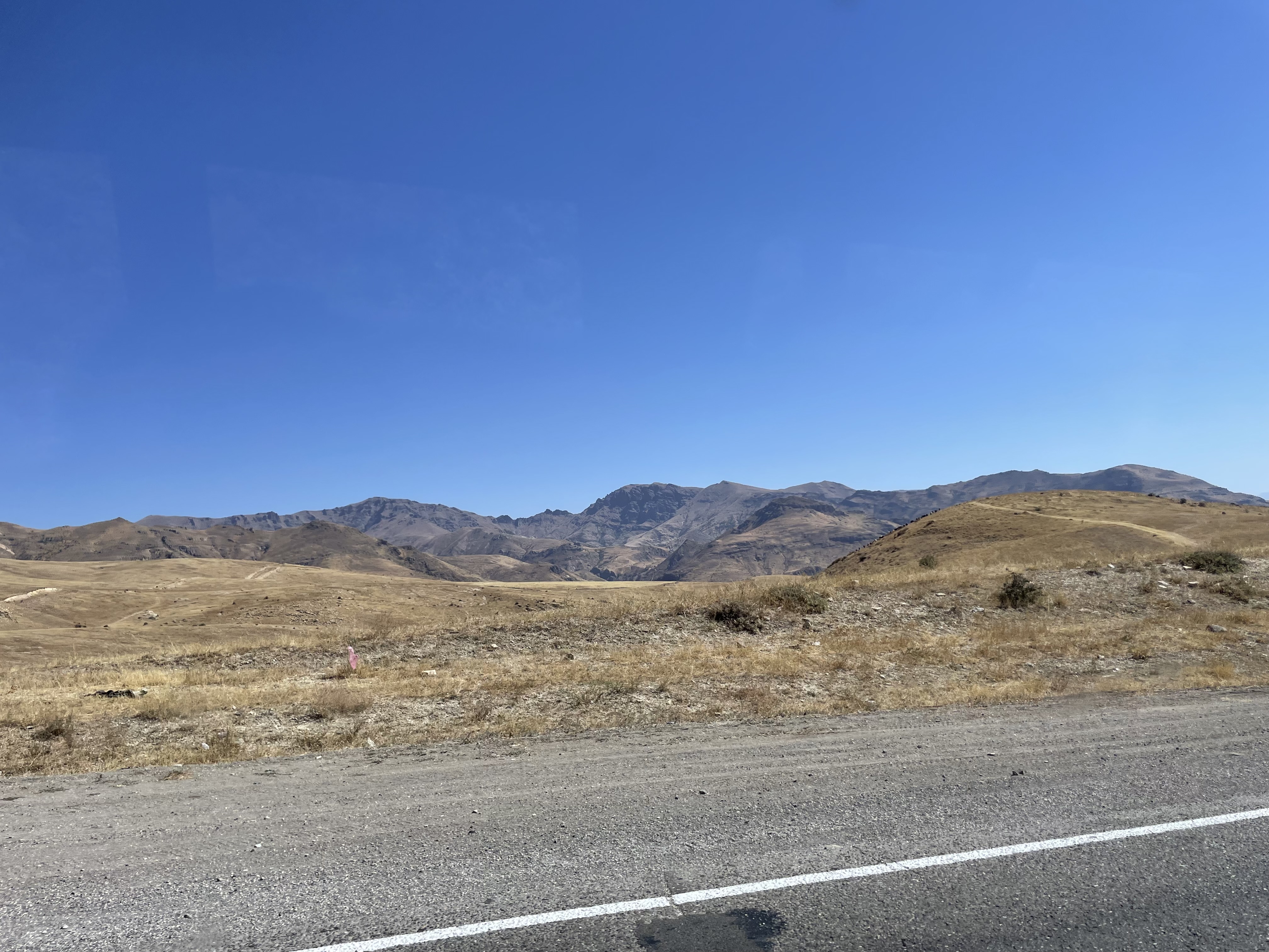 The mountain scenery in this part of Armenia is ruggedly dramatic, but looks mostly dry and barren with pockets of heavily watered agriculture. These pics will give you some idea: