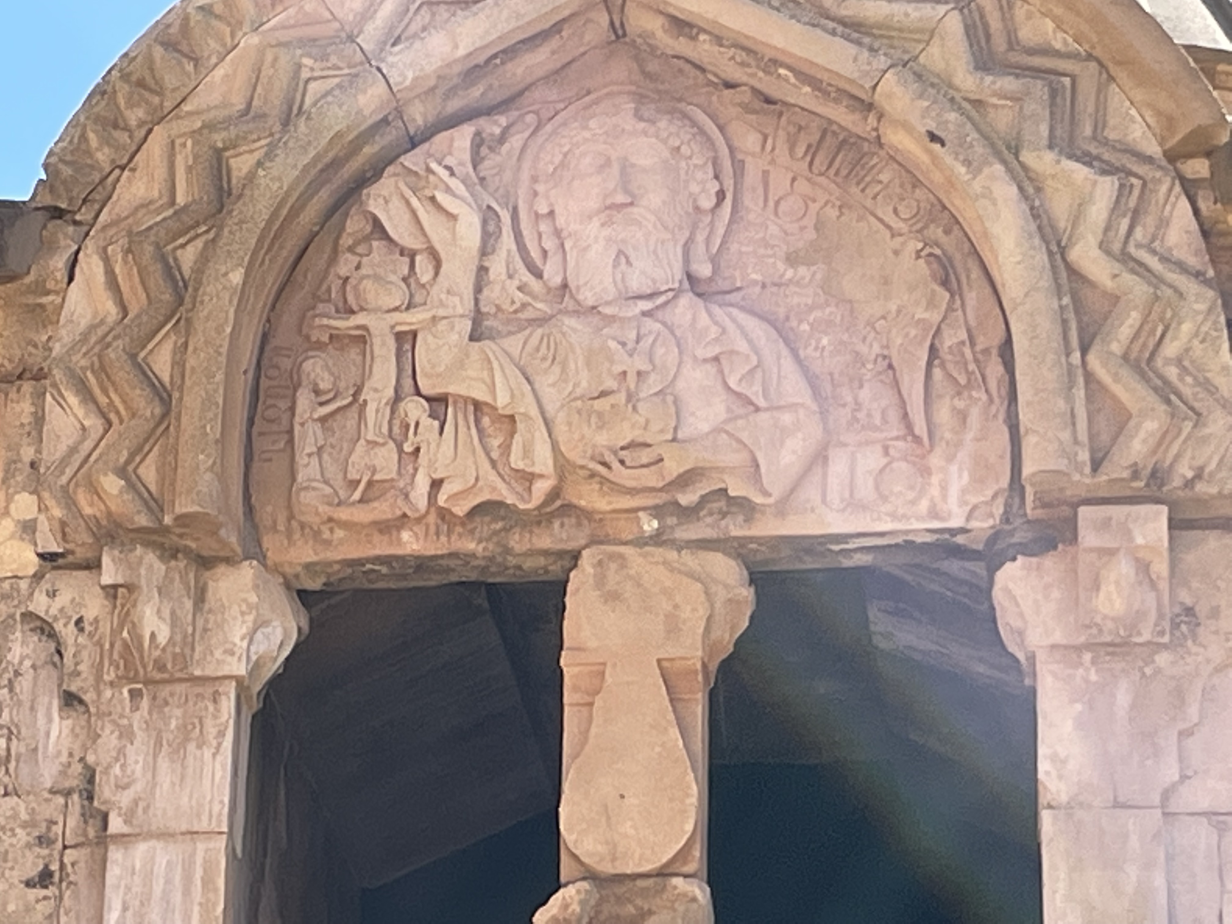 Here are some pics of the outside of the Church and its Gavit [sort of ante chamber], in particular the famous carvings on top of the entrance to the Gavit, plus a beautifullly carved wooden door to the side of the church itself: