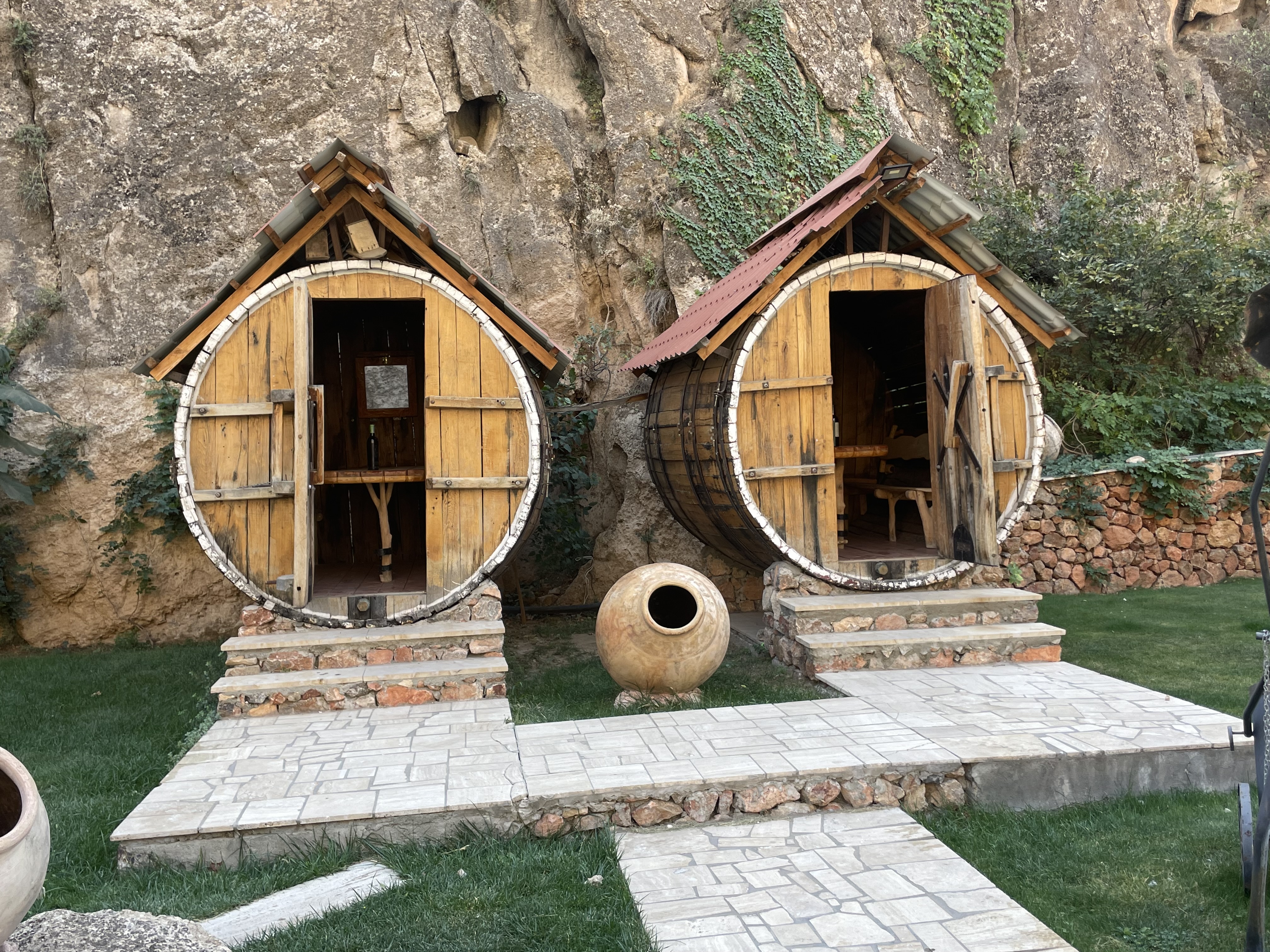 The first pic shows the large wine barrels in which wine tasting takes place! The second is another image of some of the Soviet area apartment buildings and the third shows you that the dramactic mountain scenery in this part of the world continued as we drove further east.