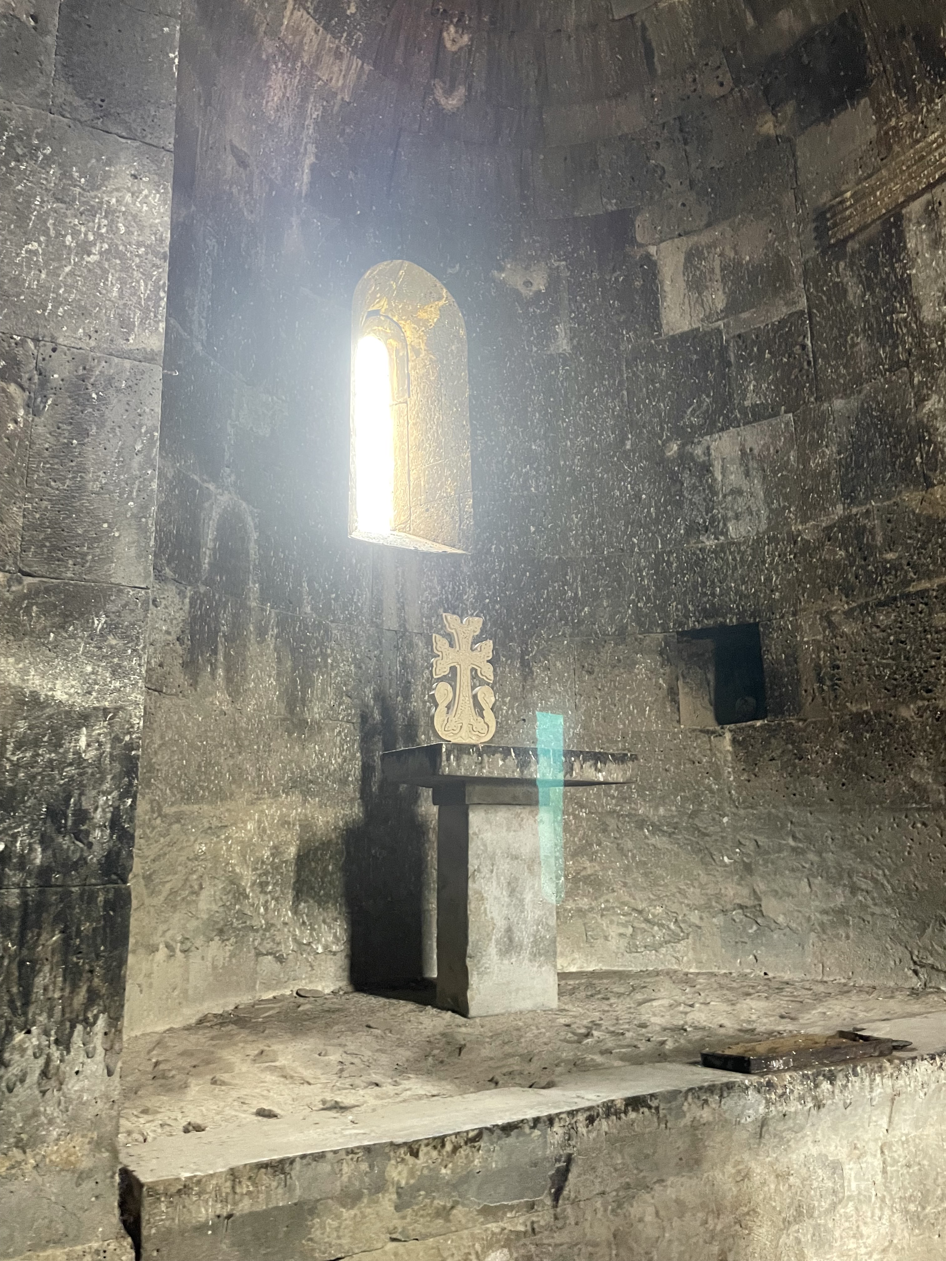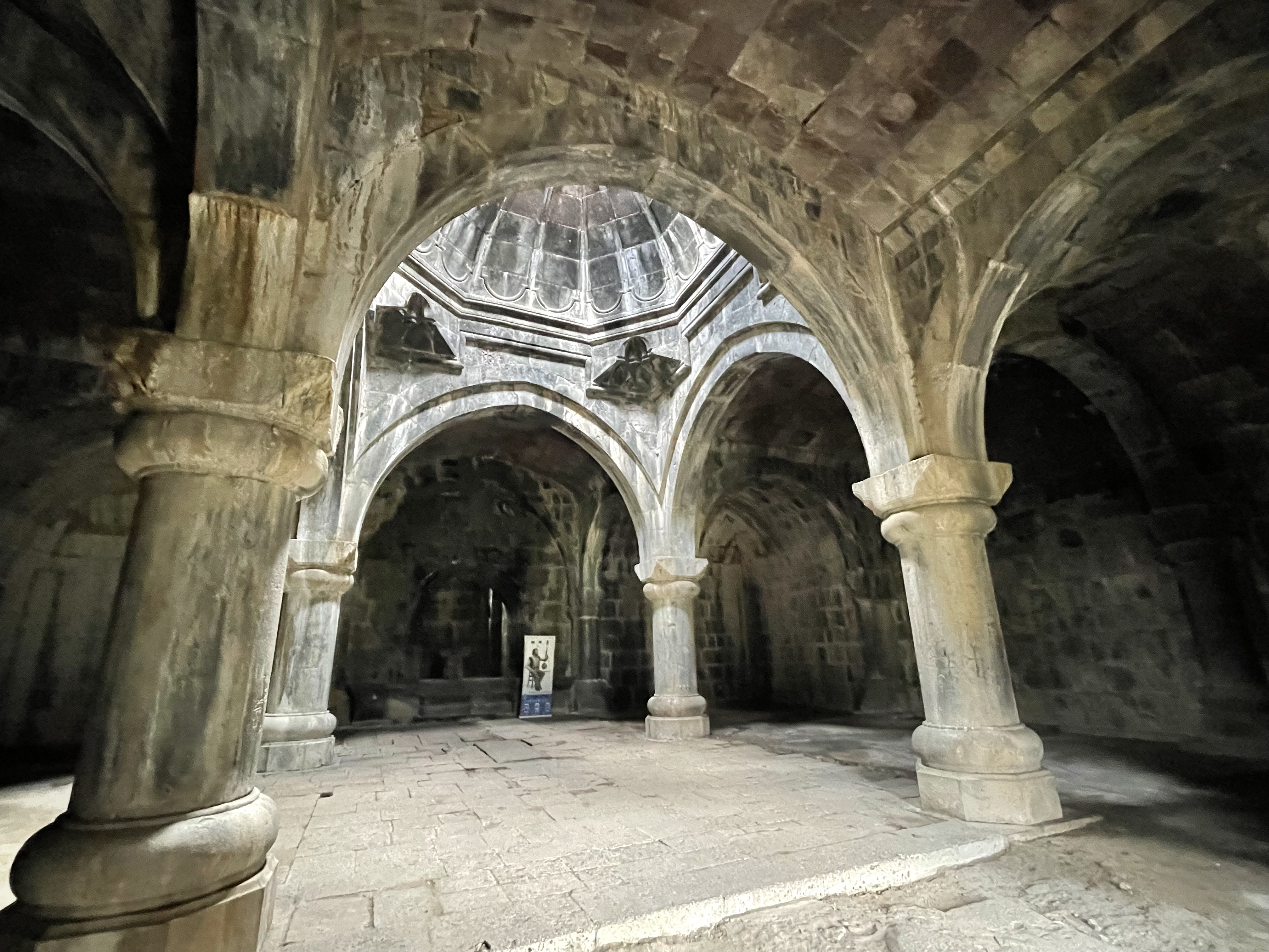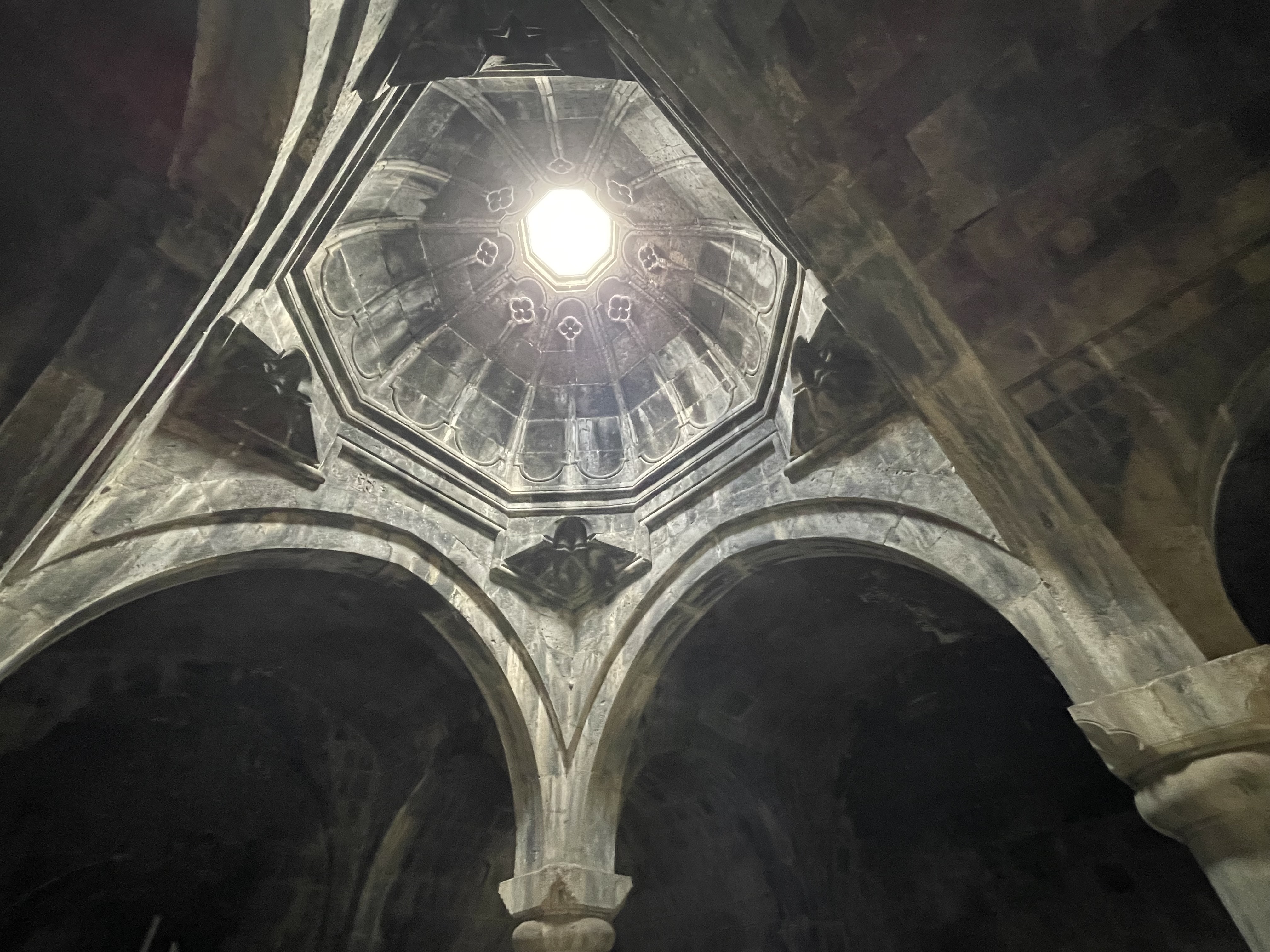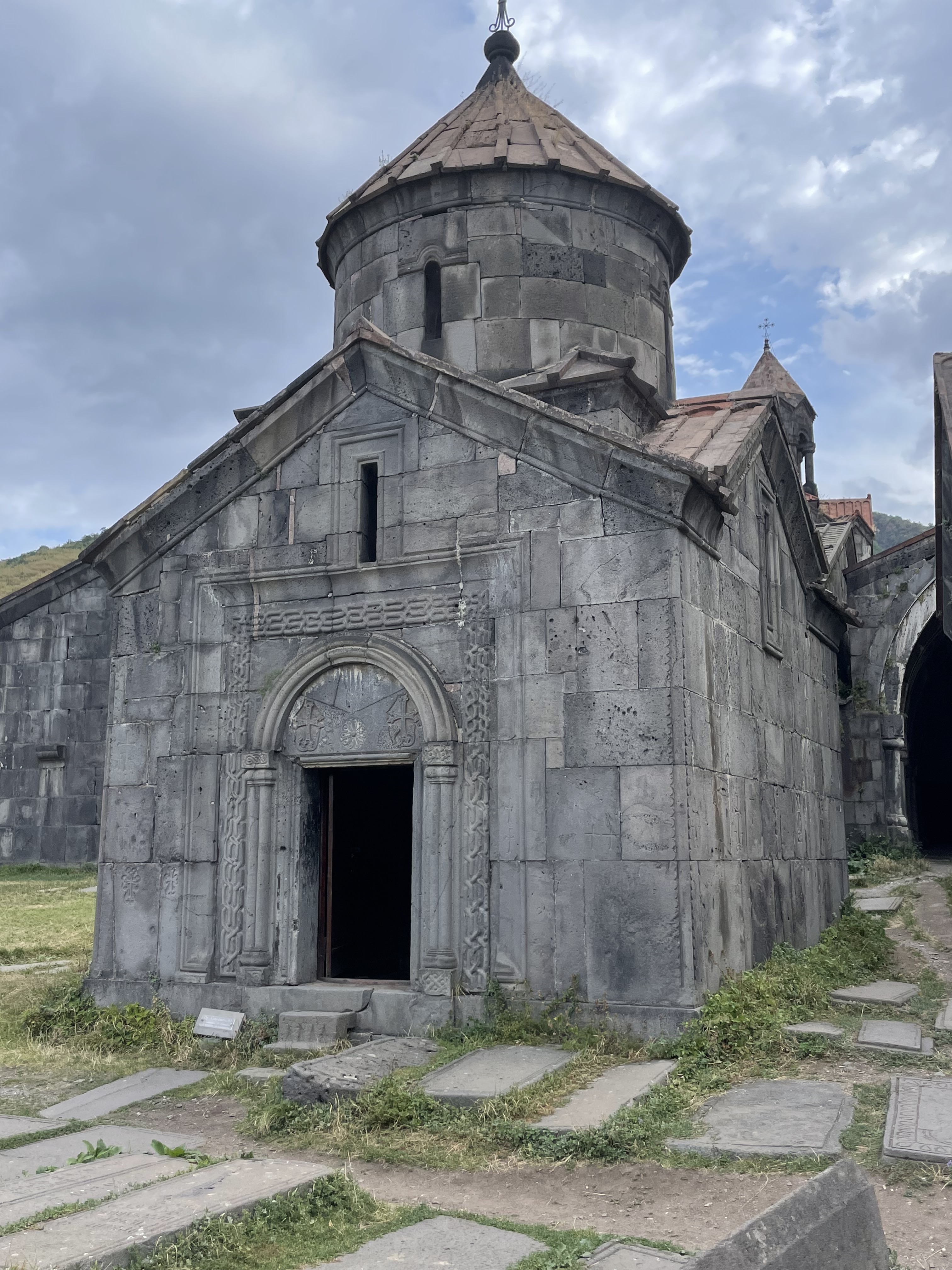 The Haghpat Monastery complex is also quite a lot older and more extensive than its near namesake, having been founded by Queen Khosrovanuysh, wife of the Bagratid king Ashott 3rd, probably in 976. The largest church in the complex is the Cathedral of St. Nshan [Holy Sign] which was completed in 991. Apart from one or two minor restorations carried out in the eleventh and twelfth centuries, the church has retained its original character and is immensely impressive as hopefully my pics will demonstrate. You can also see the impressive three story bell tower and rather smaller domed Church of St. Gregory which dates from 1005. The third church in the complex is the 13th century Chapel of St. Astvatsatsin.