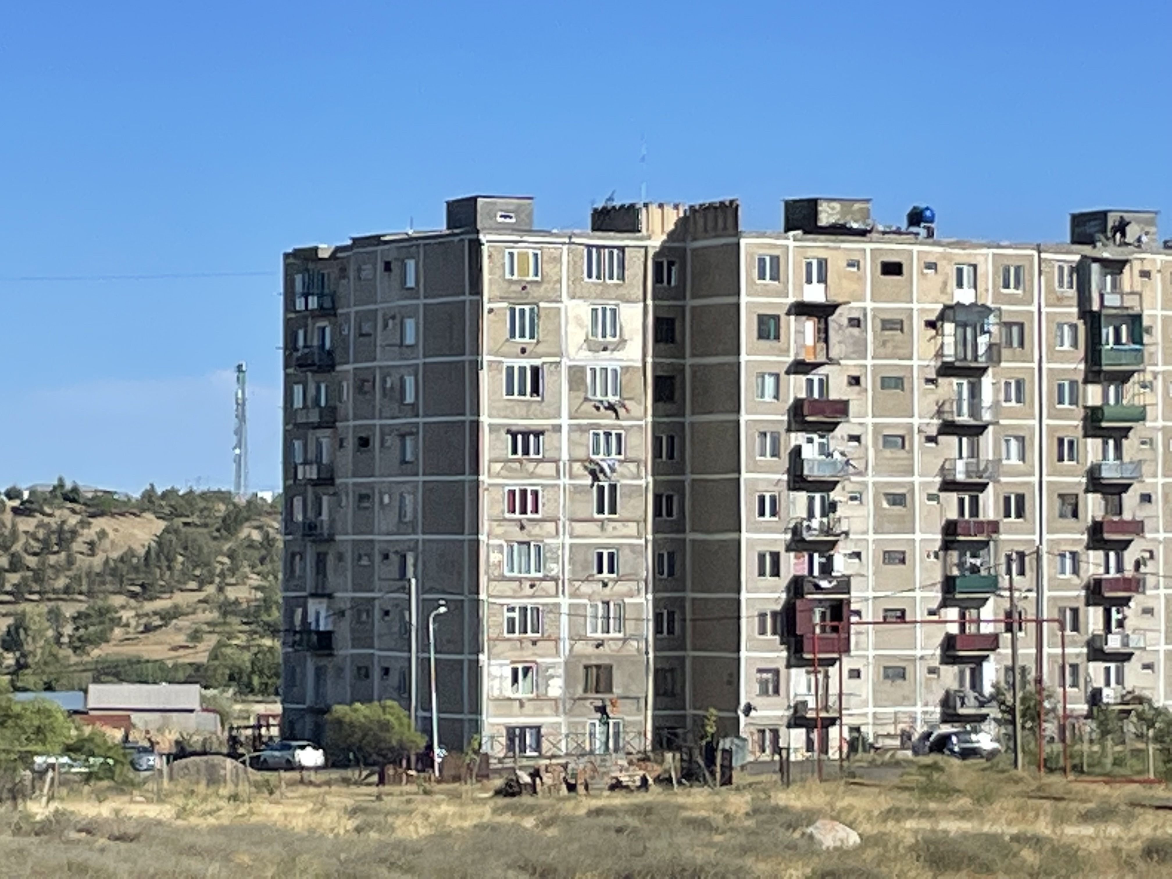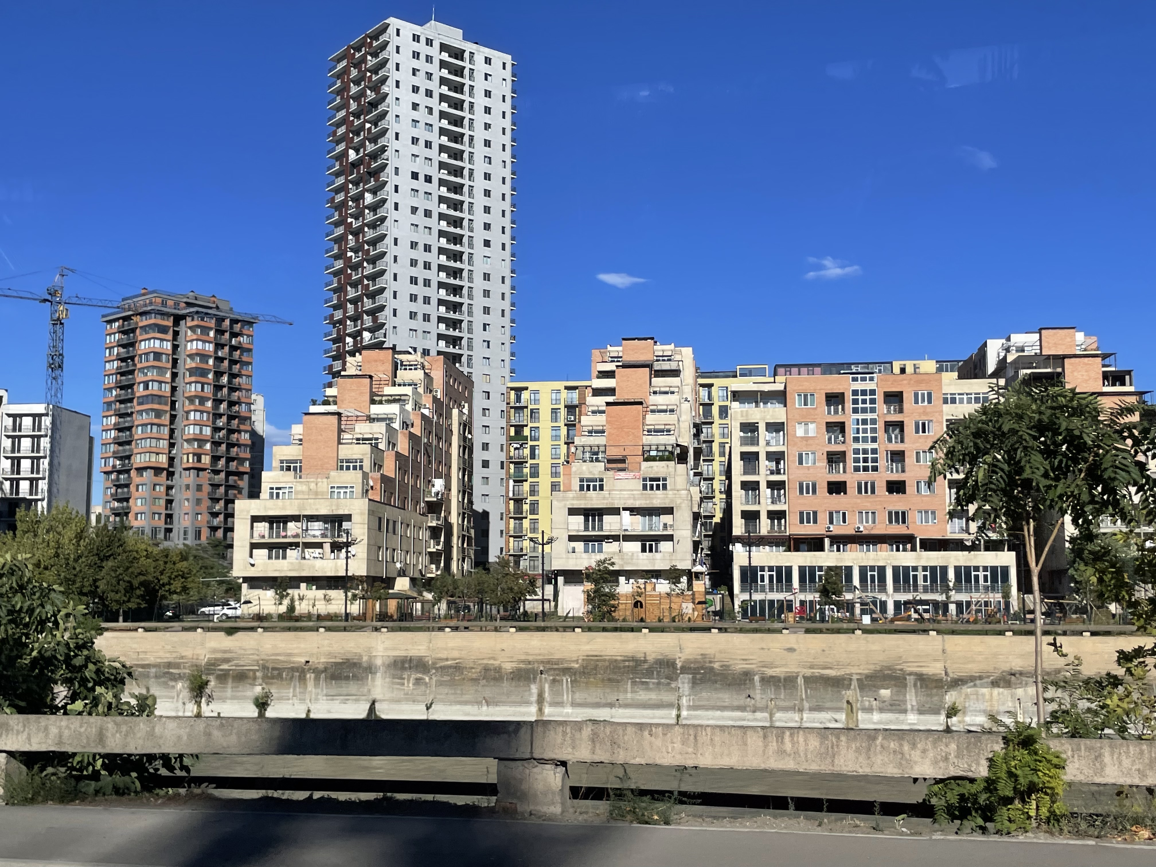 As we drove through the countryside towards the capital Tbilisi we saw large scale farming and – interestingly – although there are still thousands of the Soviet era apartment blocks the government does seem to have made some efforts to smarten them up. I don’t recall seeing that in Armenia…. We also saw lots of more modern aparment blocks being erected. Here are some pics for you: