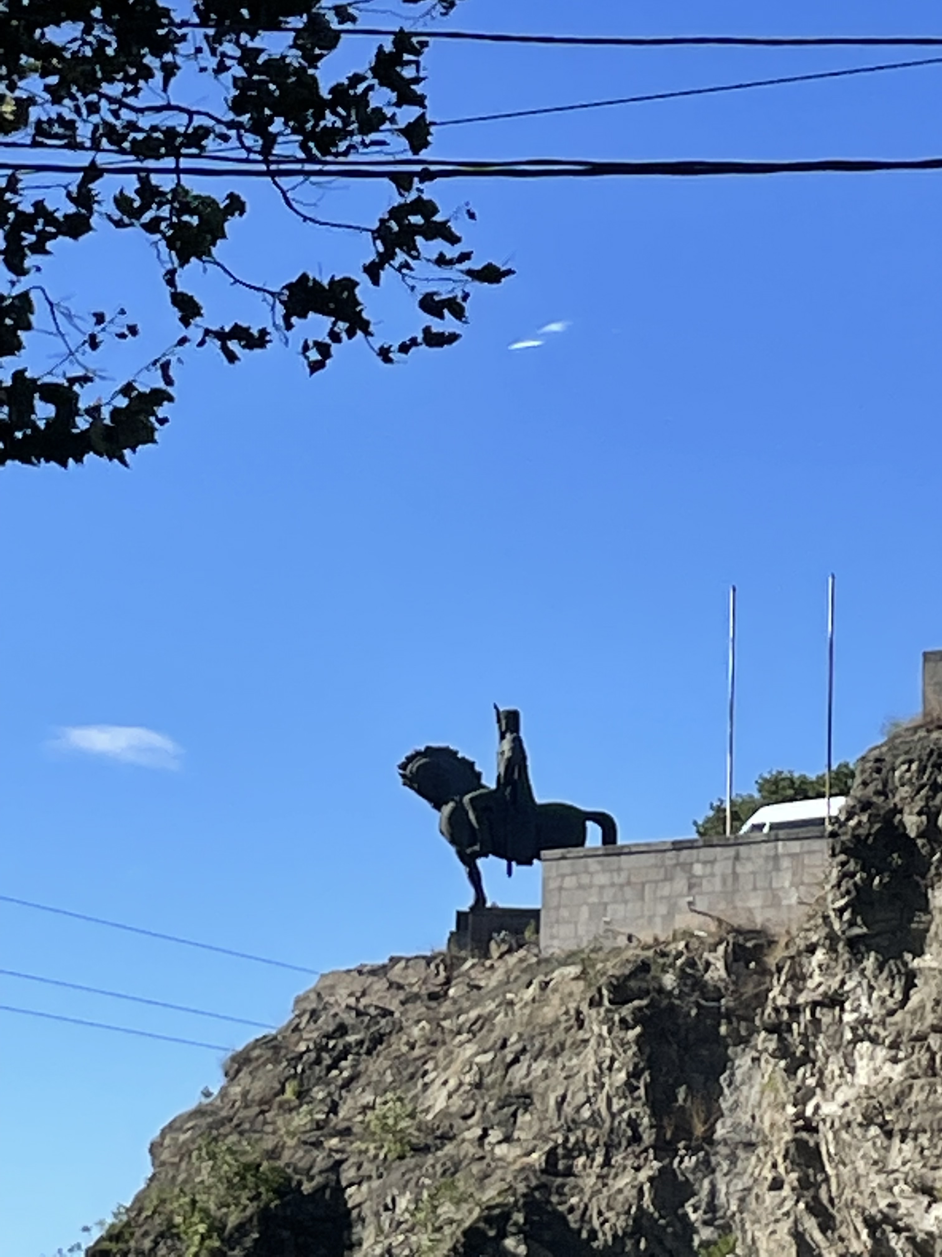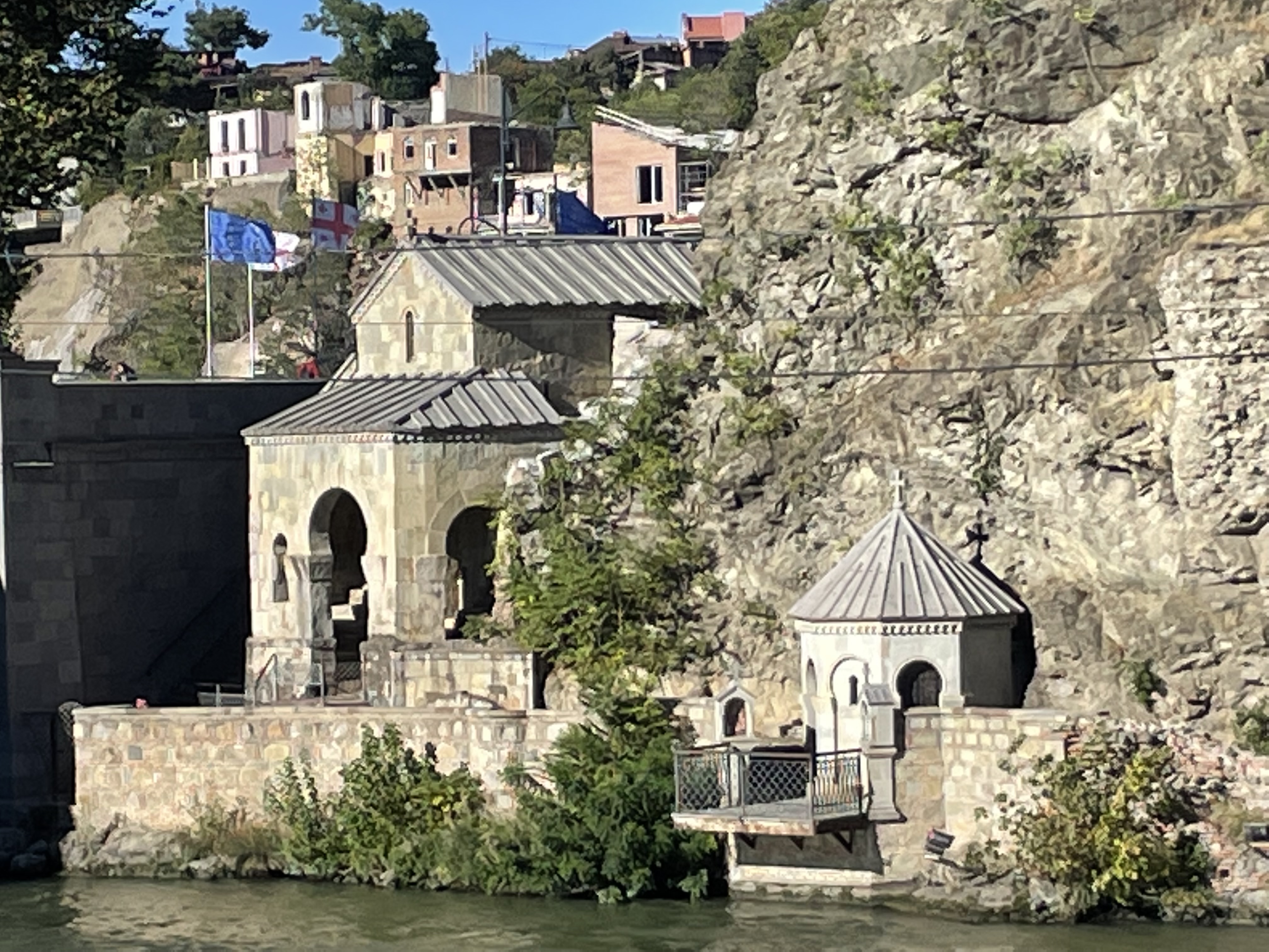 The equestrian statue is King Vakhtang I Gorgasali was a king of Iberia [not Spain, confusingly] locally known as Kartli (eastern Georgia) in the second half of the 5th and first quarter of the 6th century. He is proudly riding his horse next to Metekhi Chuch on the left bank of the river Mtkvari which we were to visit on Day 5 [Thursday]. You can also see the very posh Biltmore Hotel soaring above the river and the aerial tramway which carried us over the river and up to the Narikala Fortress the following day. Lastly, i was very taken by the small chapel nestling alongside the river just below Metekhi Church.