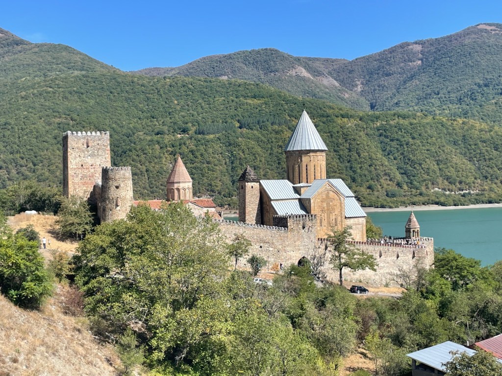 Our final stop the way south was to inspect the remarkable Ananuri Fortress Complex. Not only does it look like an authenic castle, it has also been the site of many battles over the years, mainly in the 18th century between competing duchies, until its final battle in 1812 when it was overrun by Russian troops.