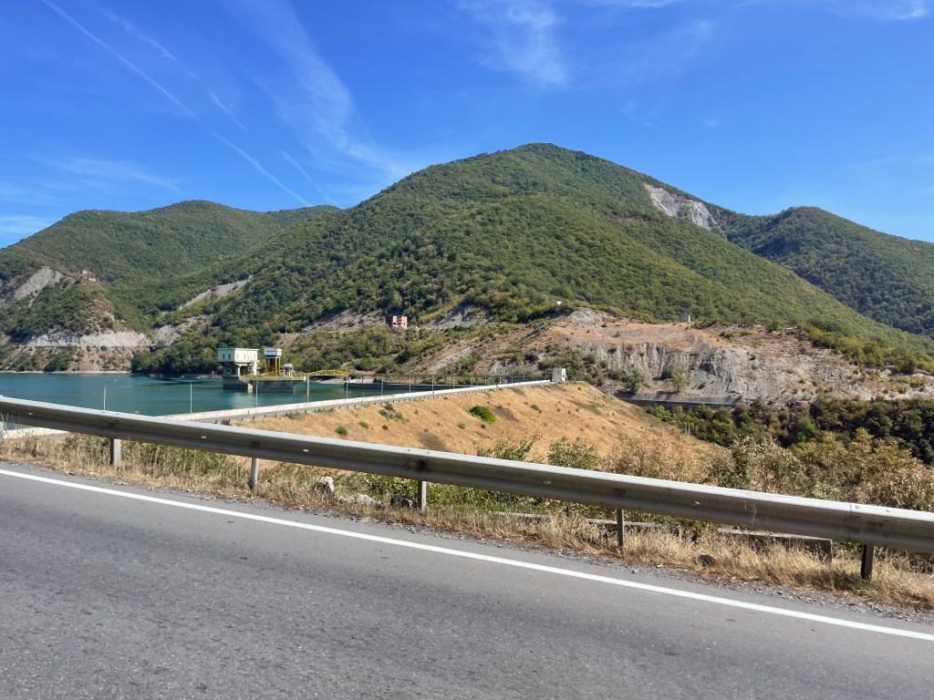The Ananuri Castle Complex lies on the south shore of the large Zhinvali Reservioir: here is a pic of the dam that led to its creation.