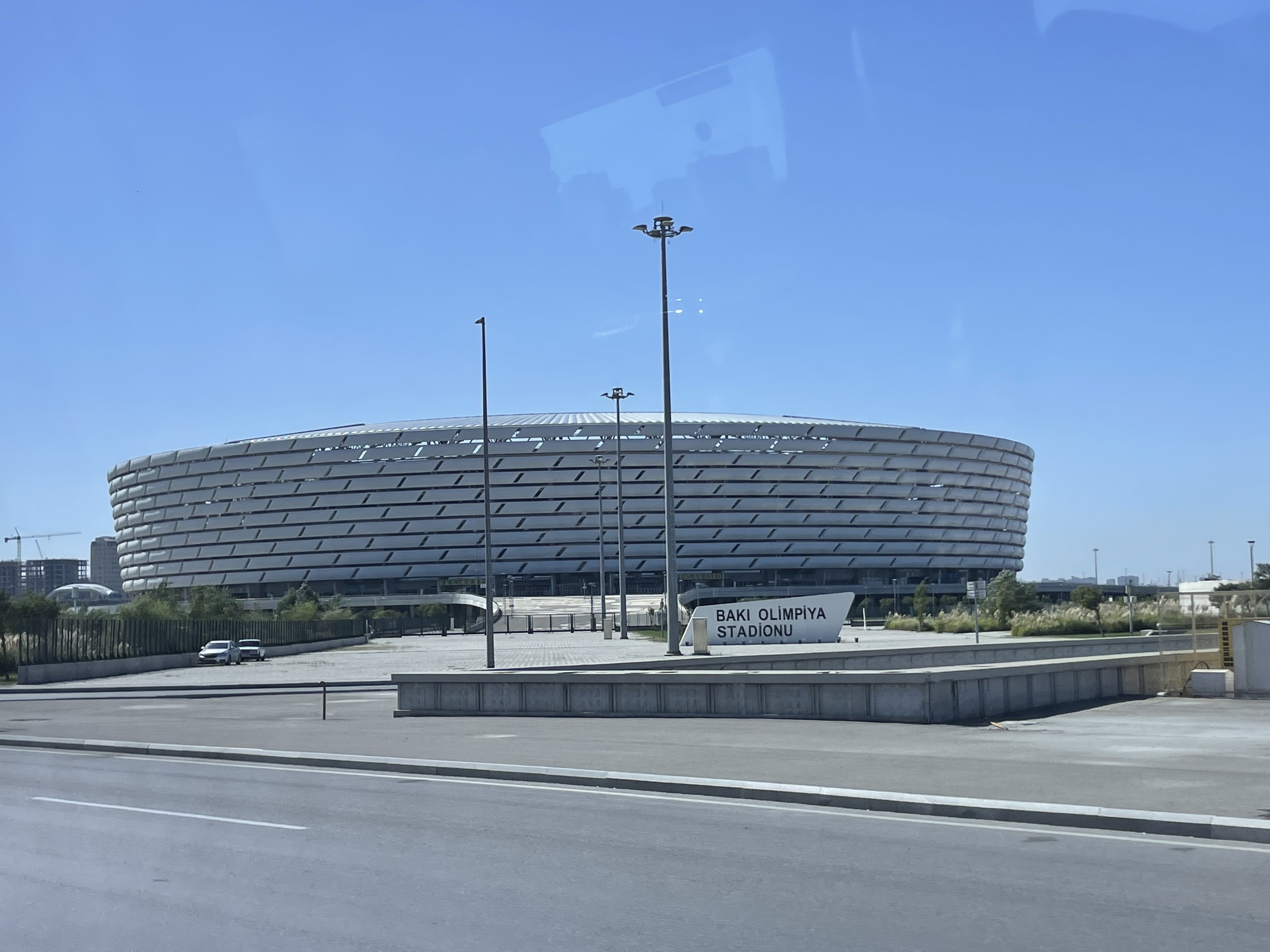 The Azerbaijanis have splurged lots of their oil money on impressive building projects around Baku which you will see more of in a couple of days when we return to the City. I thought much of the architecture was actually pretty stylish – a welcome contrast to the excesses of Ashgabat in Turkmenistan if you have ever visited that country. Here are some shots of the Baku airport and one of a Baku Olympic Stadium….