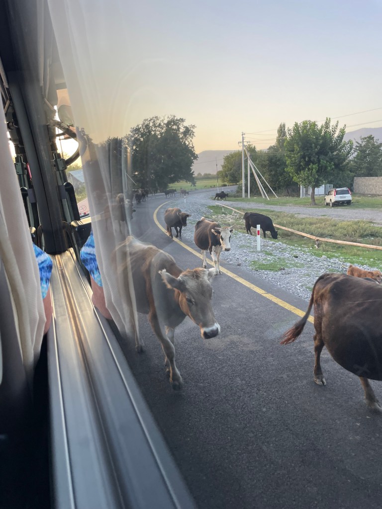 Final pic of the day: a cow jam!!! Our drivers in all three countries several times found themselves having to carefully pick their way through livestock: cows, sheep, goats and horses at various times!