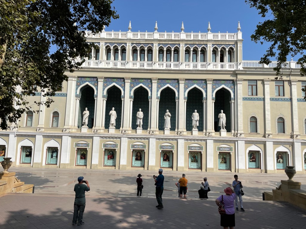 This really lovely neo-classical building is the Nizami Museum of Literature. The statues you can see are mainly early poets, writers, artists and so forth. So far as i could make out, the pictures on the ground floor were more to do with warriors and khans.