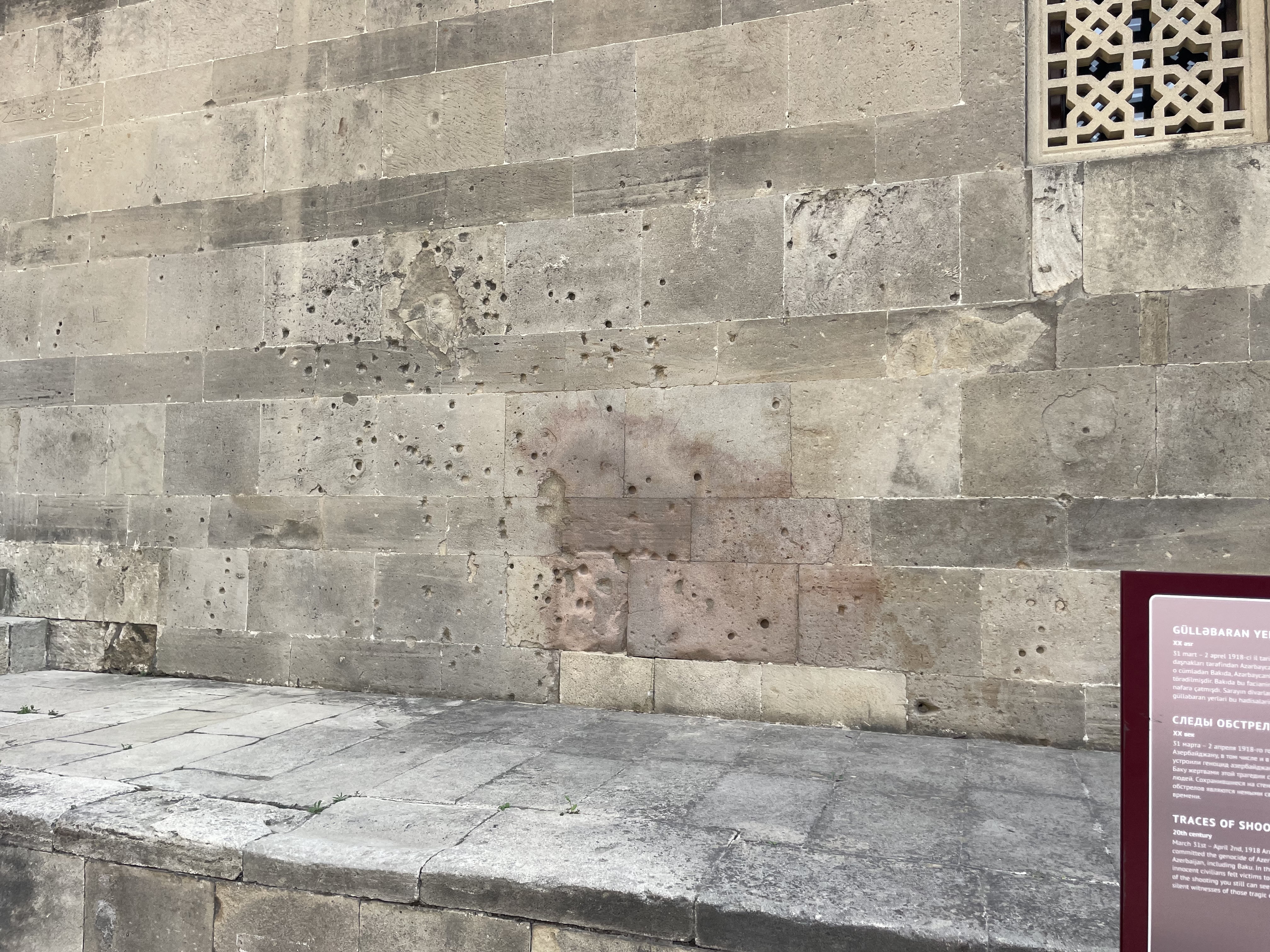 The first pic is the entrance to the Palace and the second shows bullet holes in the wall, allegedly as the result of gunfire from Armenian Dashnacks in 1918. The dome is above the vestibule at the entrance to the palace and you can see a lovely colourful wall covering. The final two pics are of the ruined bath house in the palace grounds.