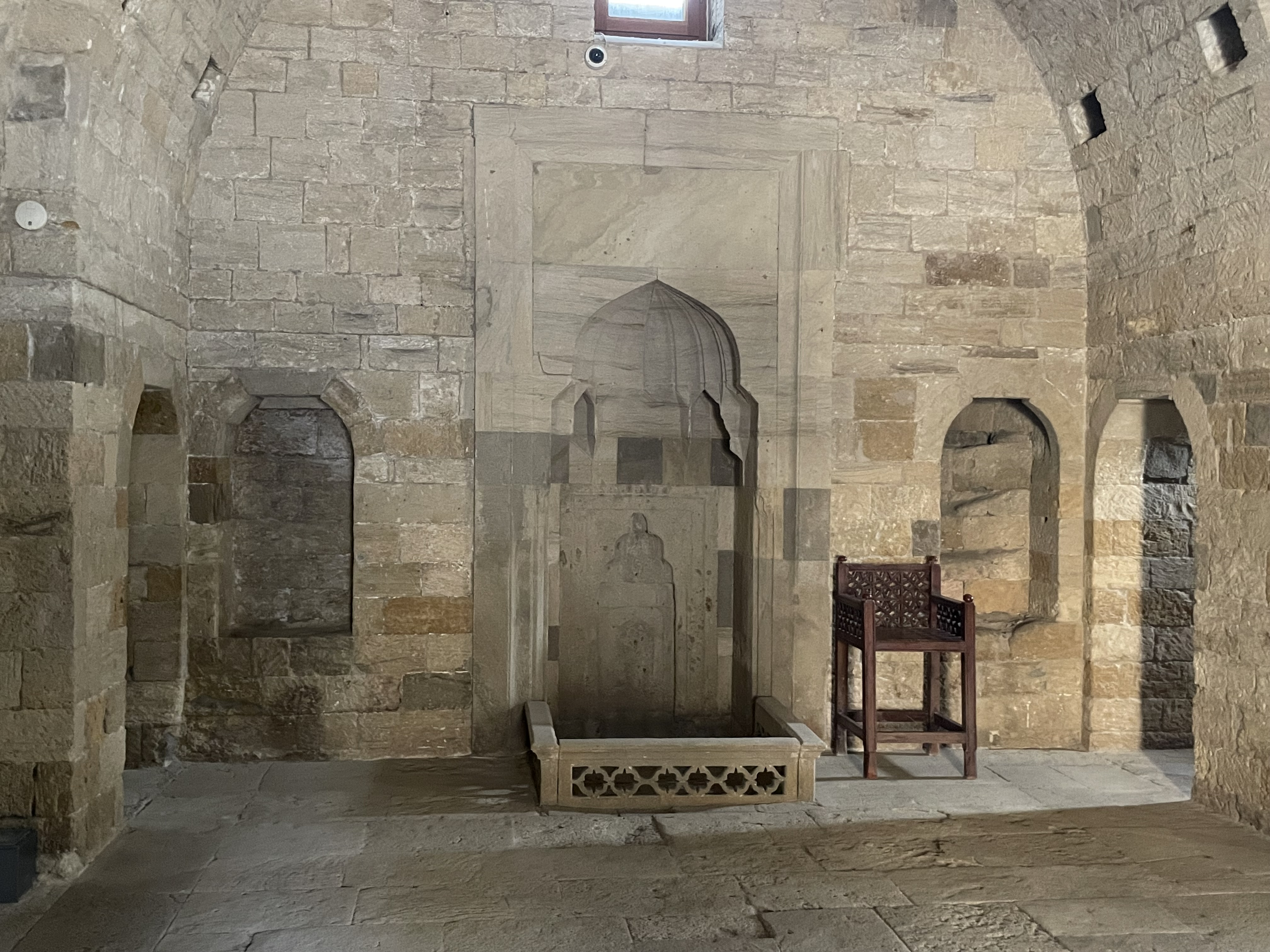 Yet another building in the Palace complex is called The Shah Mosque. The mosque was built in 1441-1442 by the order of Shirvanshah I Khalilullah. The mosque has two entrance portals: one of them faces the opening of the portal of the Shirvanshahs’ tomb, and the other is next to it and is on the side wall. The first portal belonged to outsiders, and the second to those living in the palace – Shirvanshah and his relatives!