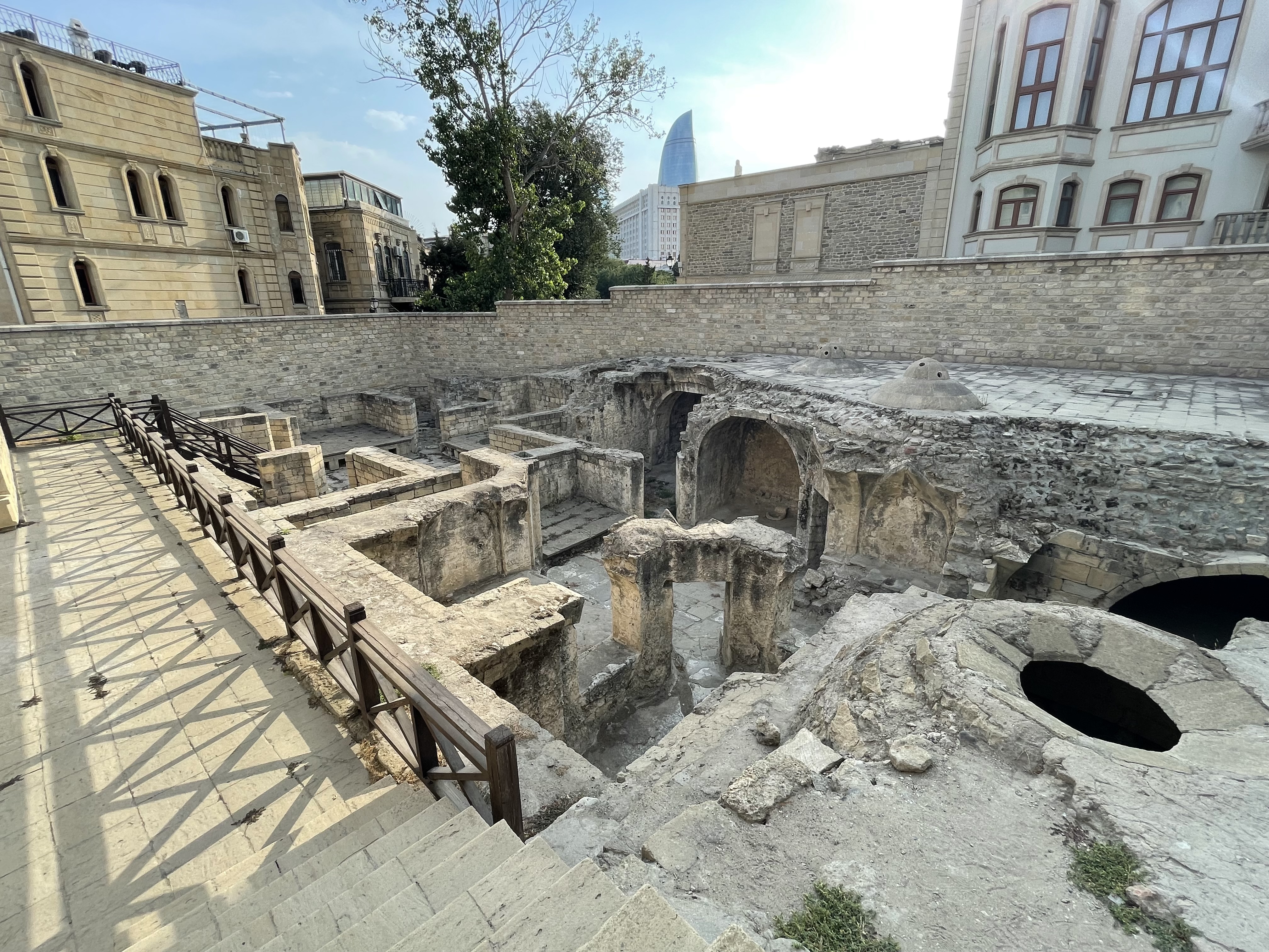 There are lots of ruins of Bath Houses in the Old City of Baku: here are a few pics to give you some idea….