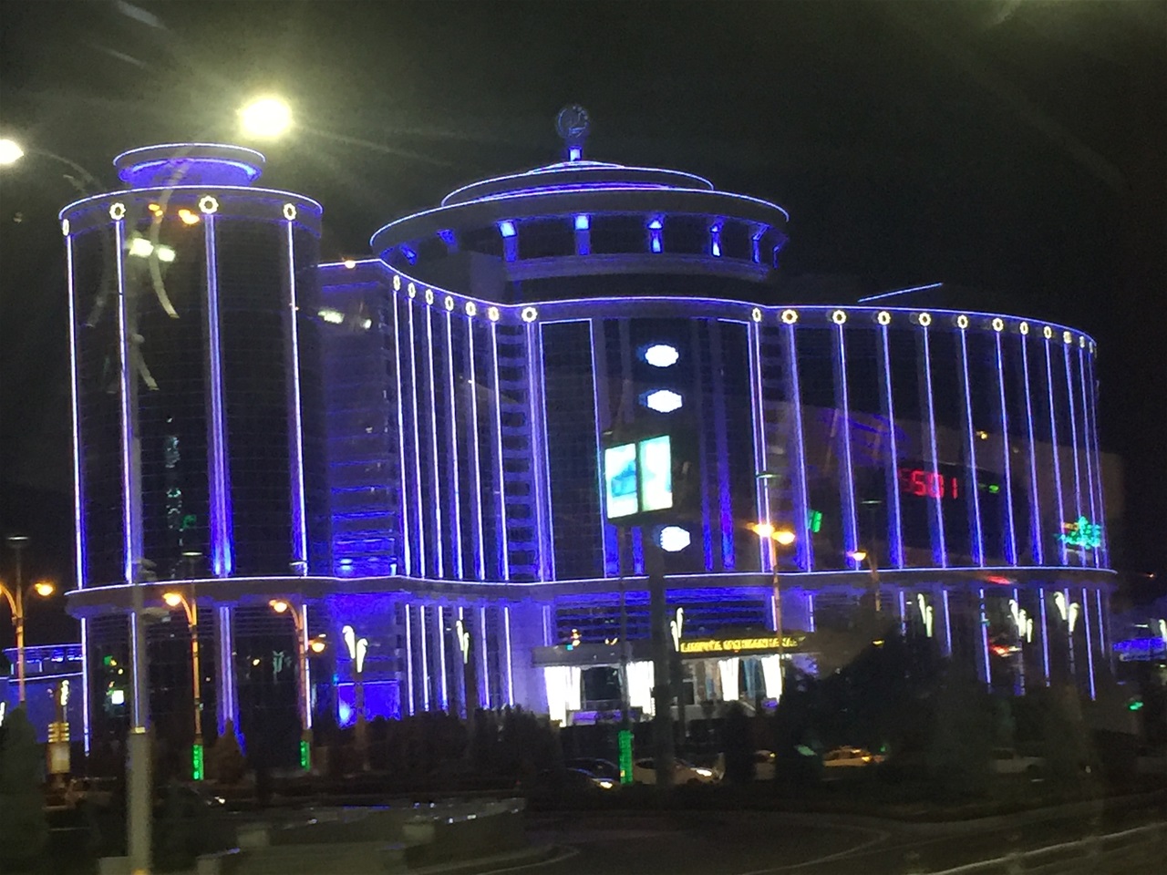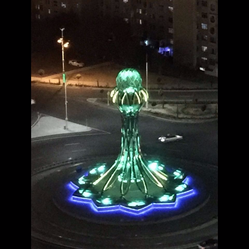 Not a lot to say about these pics! I have never been to Las Vegas, but those of my fellow travellers that have say that’s the closest they have seen in terms of gross flashiness…. the key difference is that Las Vegas is full of hustle and bustle whereas Ashgabat is almost completely deserted – just a ghost town! The first pink looking building is the posh hotel where we ate our dinner on the top floor. The hotel appeared to be empty: certainly our little party were the only folks eating in the restaurant. A genuinely bizarre experience…..