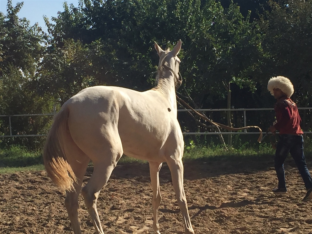 The phrase Heavenly Horses has been stretched over the millenia to include the Akhal-Teke a Turkmenistan breed: they are a national emblem in the country. There are thought to be about 6,600 of these horses in the world: they are adapted to severe weather conditions and are thought to be one of the oldest existing horse breeds. They are especially valued for their endurance: this was demonstrated when in 1935 a group of Turkmen riders rode the 2,500 miles from Ashgabat to Moscow in 84 days, including a three day crossing of 235 miles of desert without water. The Akhal-Teke is also known for its form and grace as a show jumper.